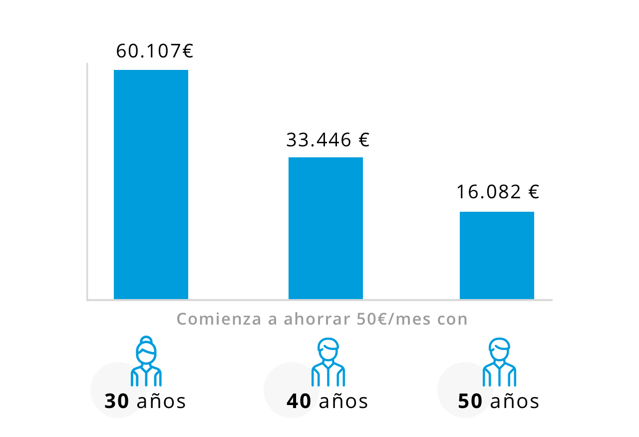 Ahorra 50 € al mes desde hoy y descubre lo que puedes conseguir para tu jubilación